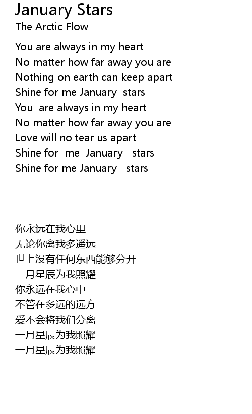 | [01:12] | Shine for me January stars |
