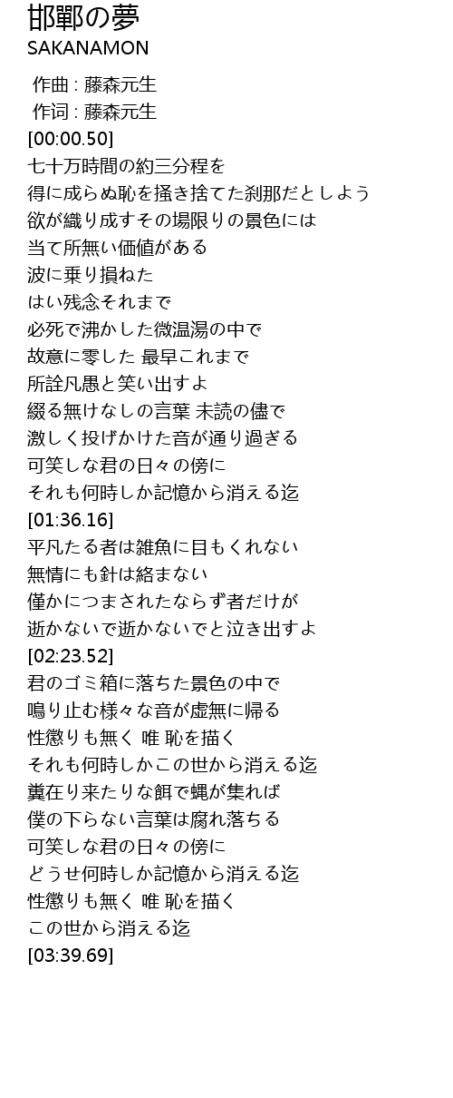 | [02:37.47] | 性懲りも無く 唯 恥を描く |