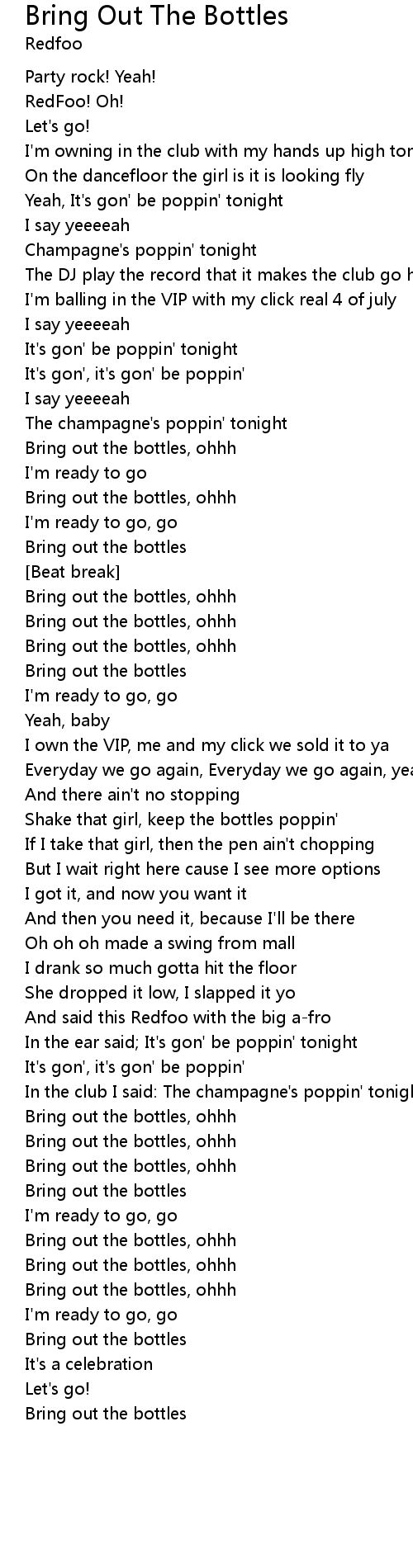 Bring out the bottles, ohhh |