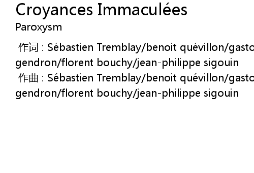 | [00:00.000] | 作词 : Sébastien Tremblay/benoit quévillon/gaston gendron/florent bouchy/jean-philippe sigouin |