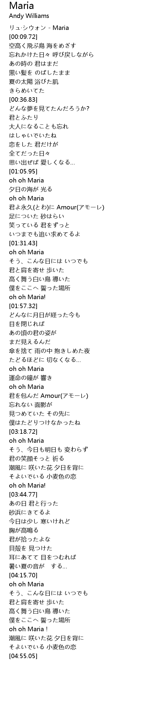| [03:00.26] | oh oh Maria |