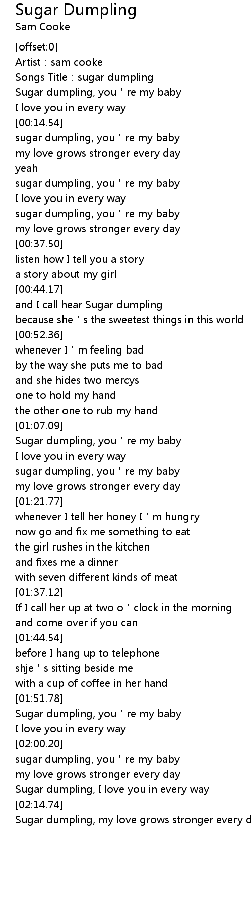 | [00:08.74] | Sugar dumpling, you re my baby |