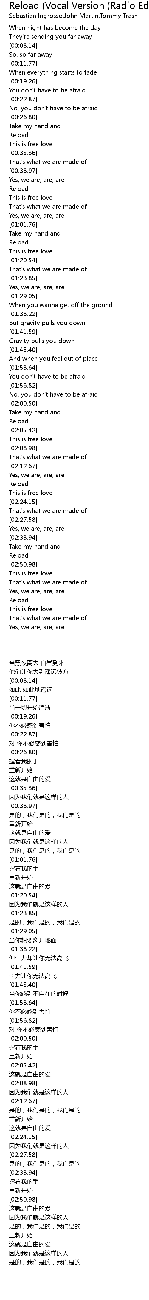 Reload (Vocal Version (Radio Edit)) Lyrics