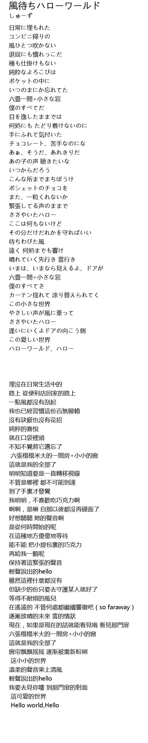 | [02:26.06] | ささやいたハロー |