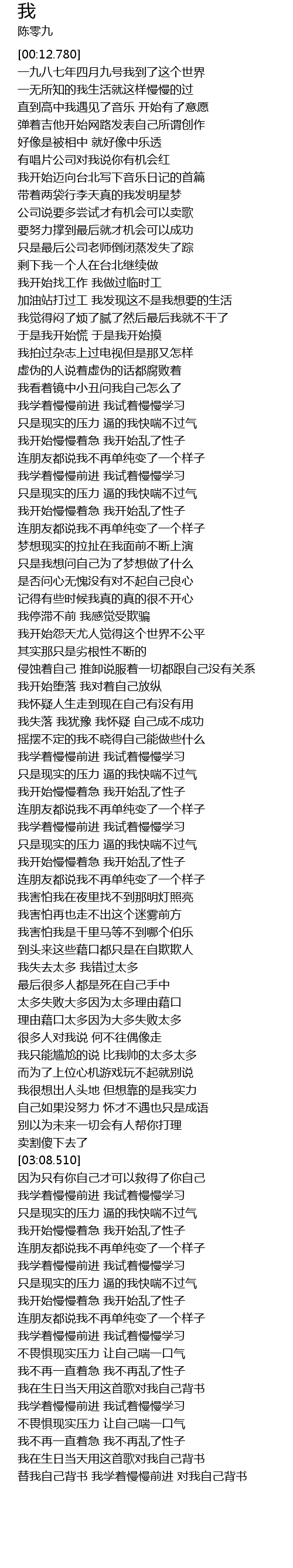 | [03:56.530] | ti wo zi ji bei shu wo xue zhe man man qian jin dui wo zi ji bei shu |