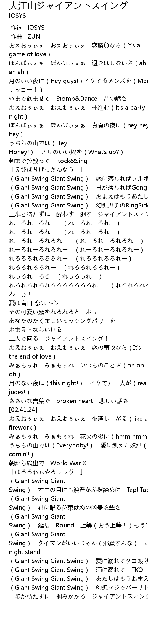 | [01:24.160] | (Giant Swing Giant Swing) 幻想ガチのRingSide |