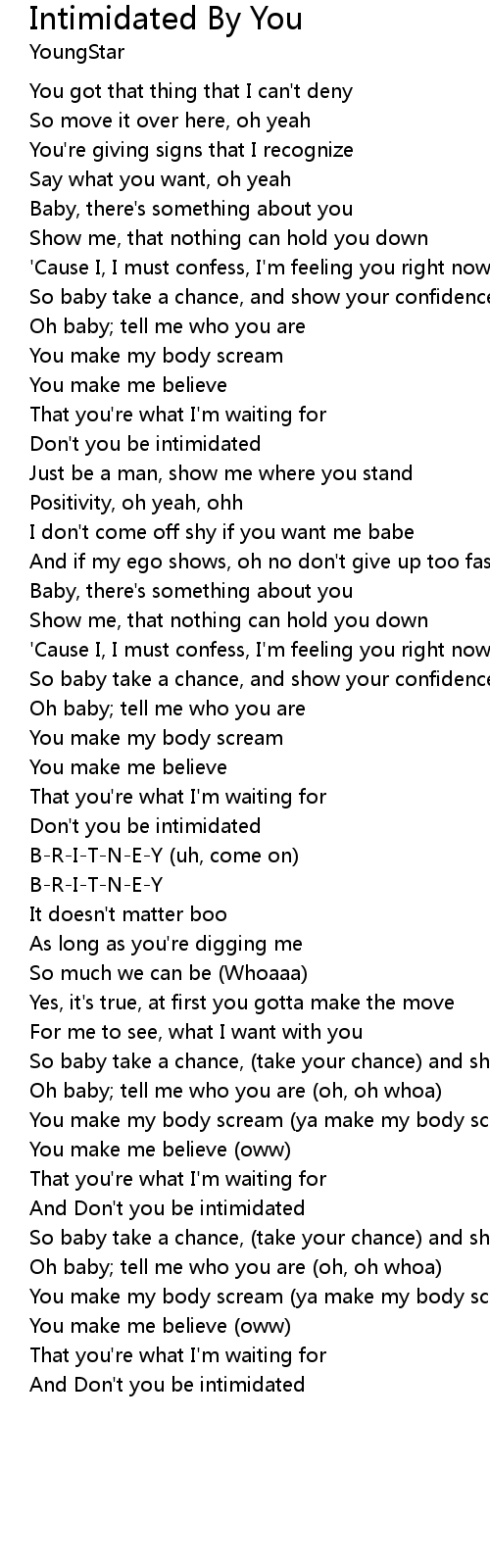 And Don't you be intimidated |