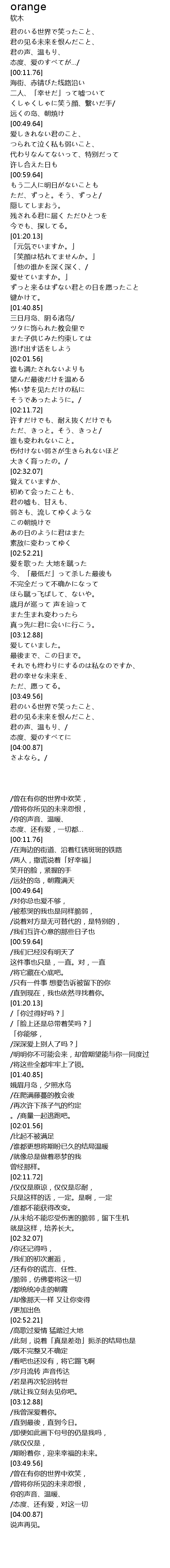| [00:44.07] | くしゃくしゃに笑う顔、繋いだ手/ |