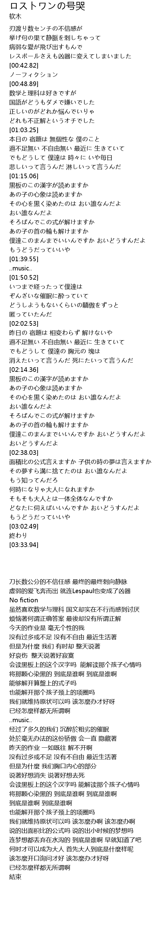 | [00:45.21] | ノーフィクション |