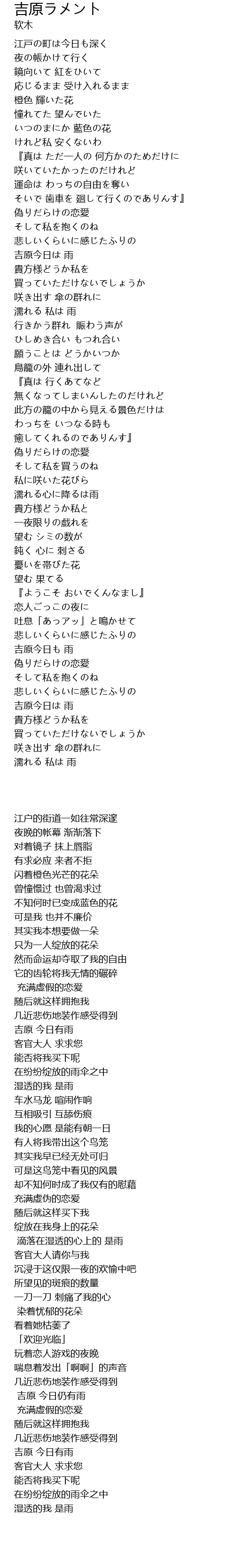 | [02:54.68] | 吉原今日も 雨 |
