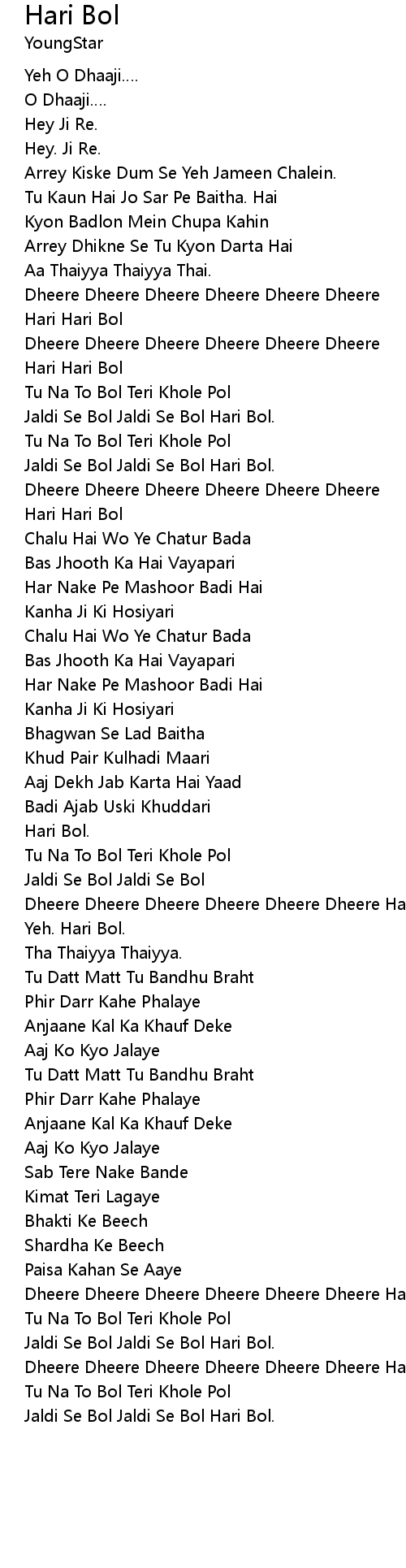 | Jaldi Se Bol Jaldi Se Bol Hari Bol. |