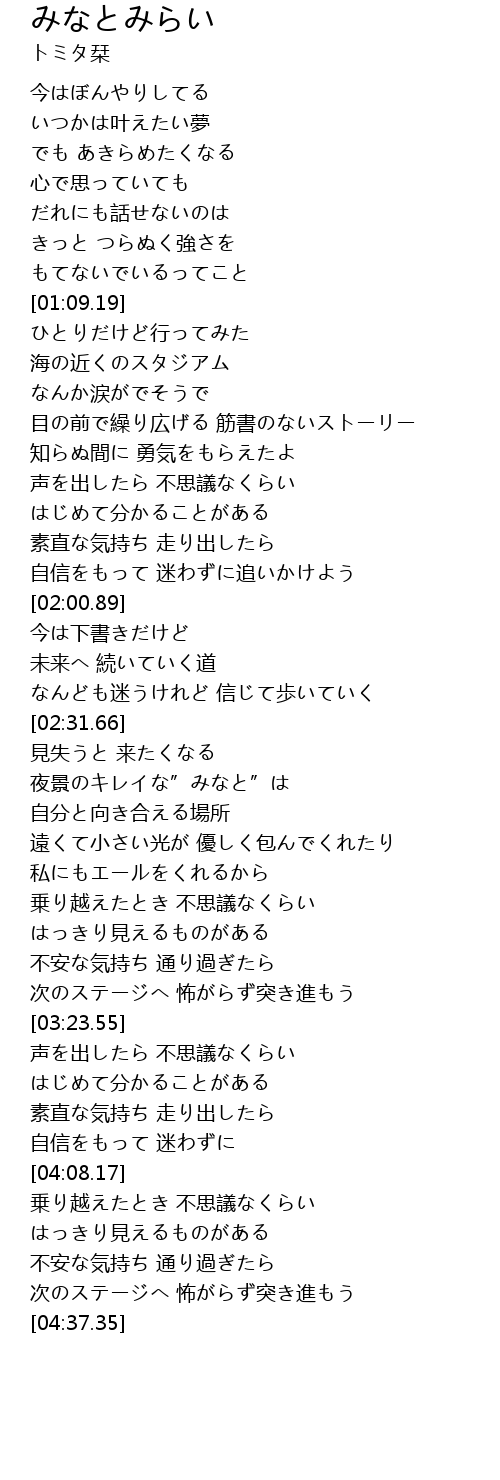 | [01:51.63] | 自信をもって 迷わずに追いかけよう |