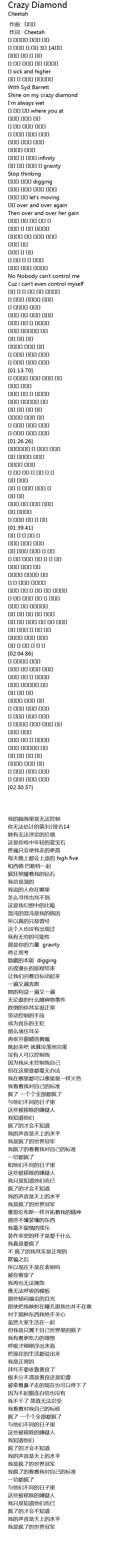 | [00:20.39] | Shine on my crazy diamond |
