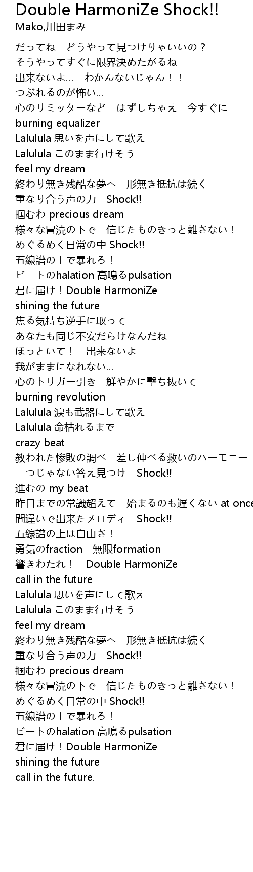 | 昨日までの常識超えて 始まるのも遅くない at once | |