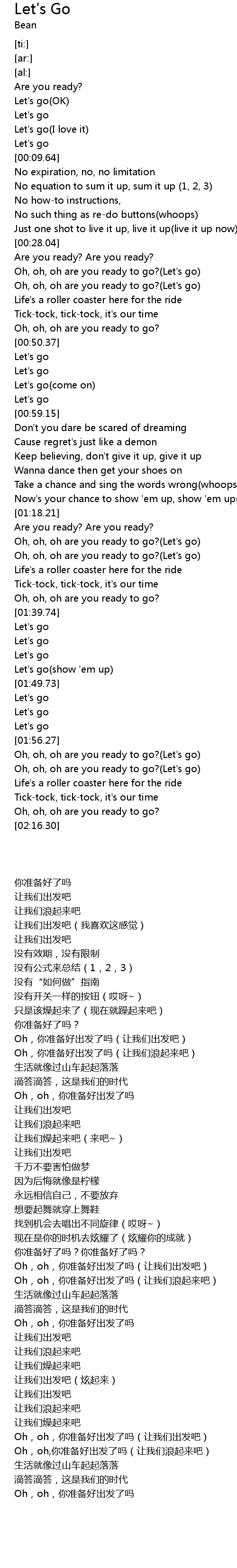 Oh, oh, oh are you ready to go?(Let's go) |