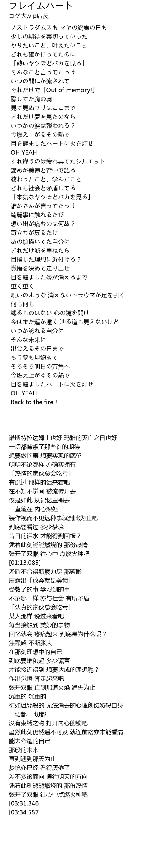 | [03:26.042] | 目を醒ましたハートに火を灯せ |