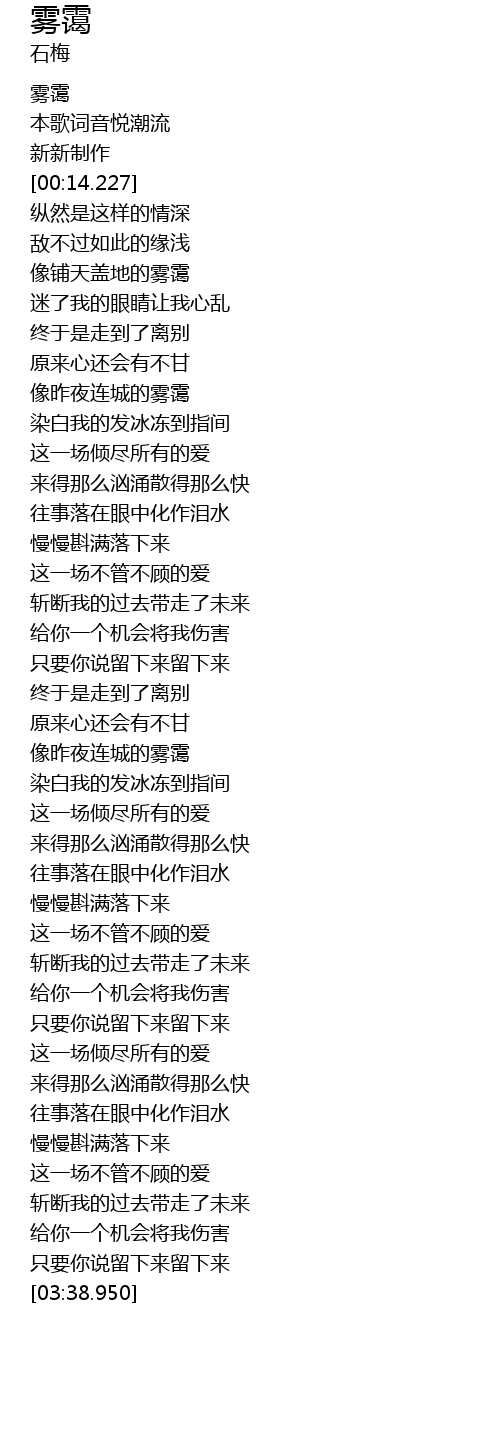 | [00:34.39] | 像铺天盖地的雾霭 |