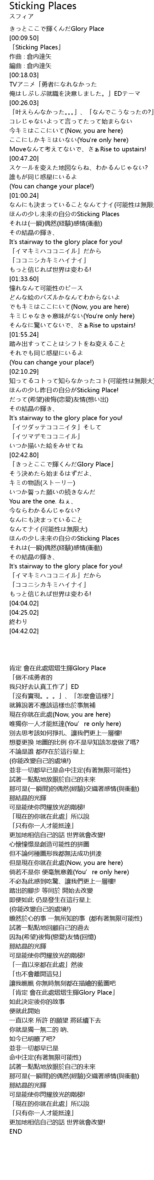 | [01:06.37] | ほんの少し未来の自分のSticking Places |