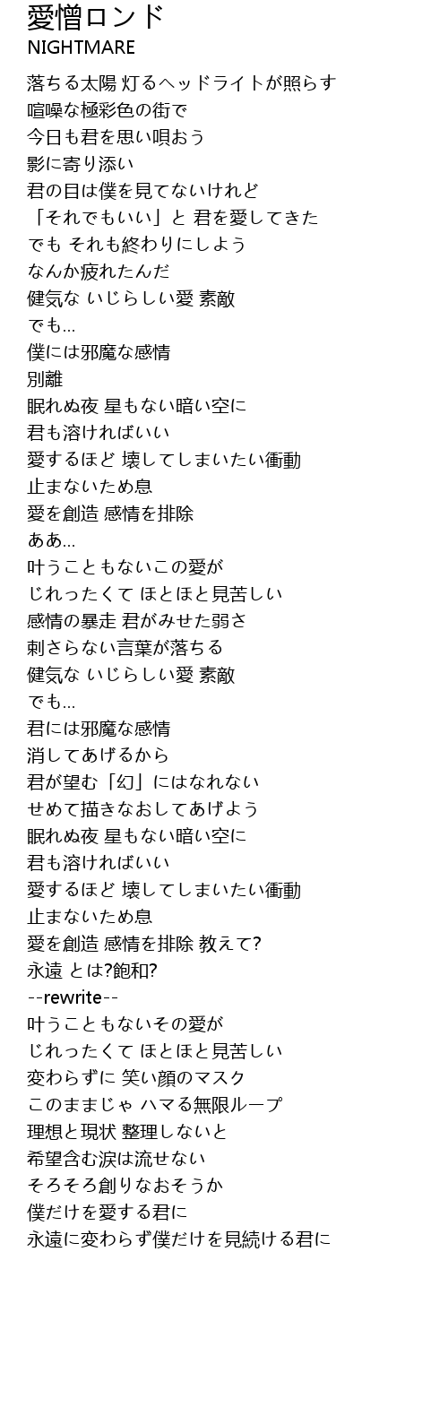 | 愛するほど 壊してしまいたい衝動 | |