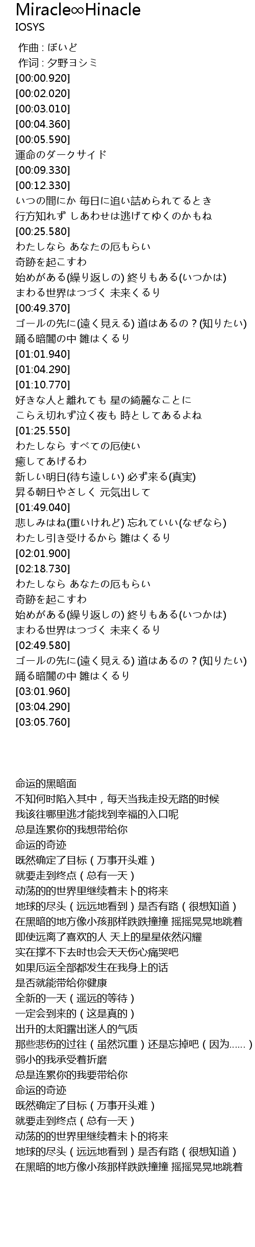 | [02:55.670] | 踊る暗闇の中 雛はくるり |