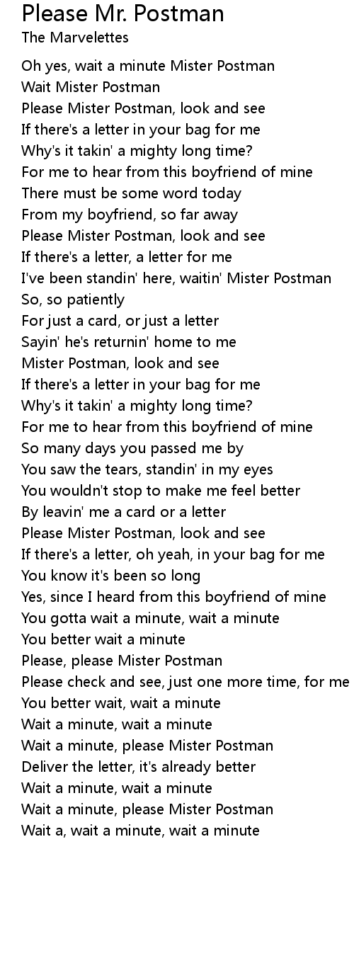Oh yes, wait a minute Mister Postman |