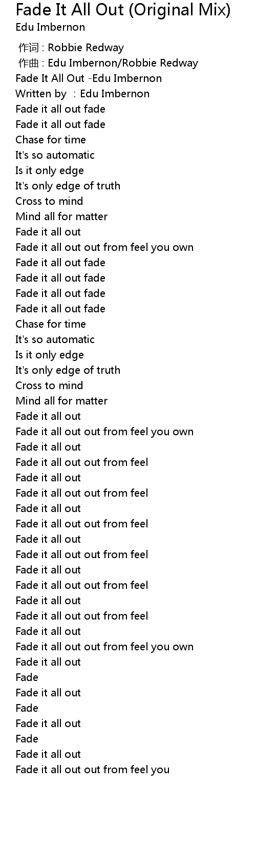 | [00:00.380] | Fade It All Out Edu Imbernon |