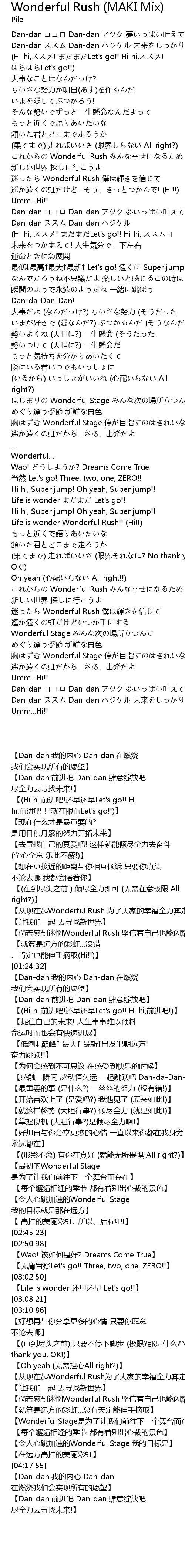 | [03:53.44] | Wonderful Stage みんな次の場所立つんだ |