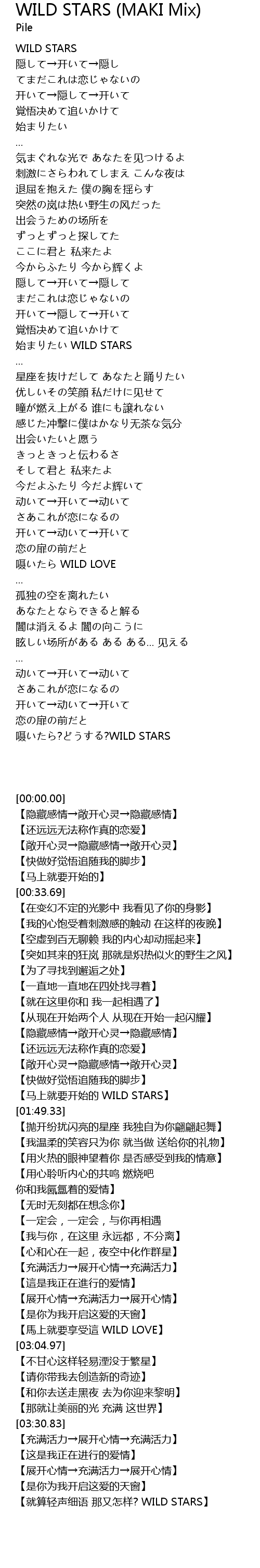 | [03:52.84] | 嗫いたら?どうする?WILD STARS |