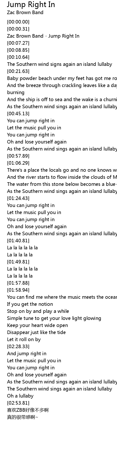 | [00:06.26] | Zac Brown Band - Jump Right In |