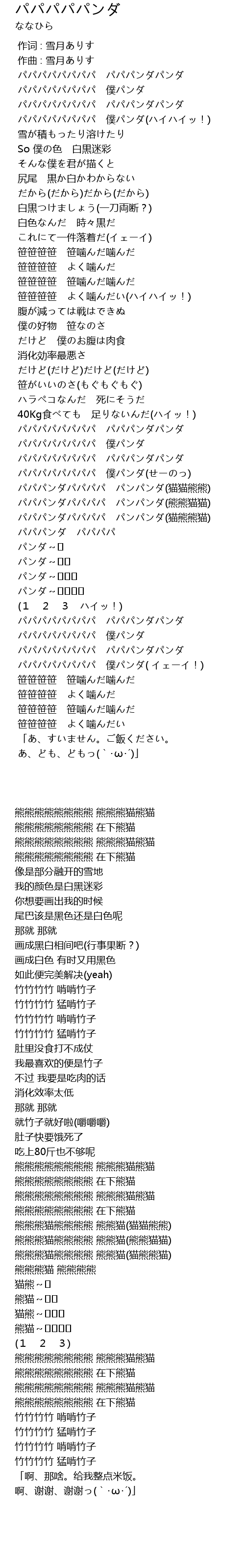 | [01:31.586] | パパパンダパパパパ パンパンダ(猫熊熊猫) |