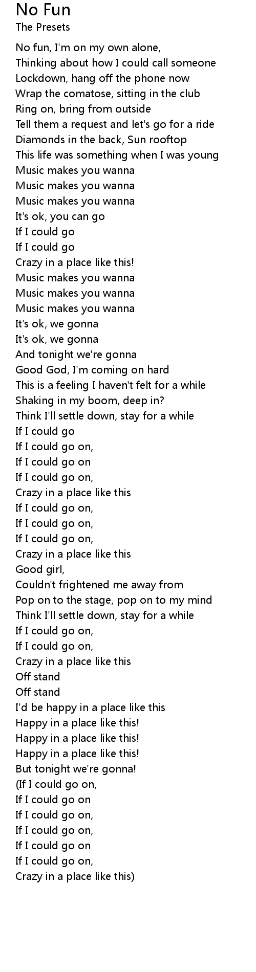 No fun, I'm on my own alone, |