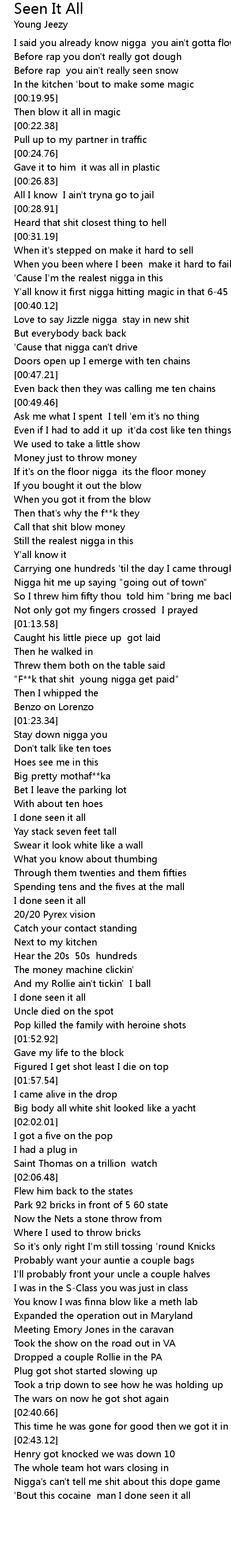 'Bout this cocaine man I done seen it all |