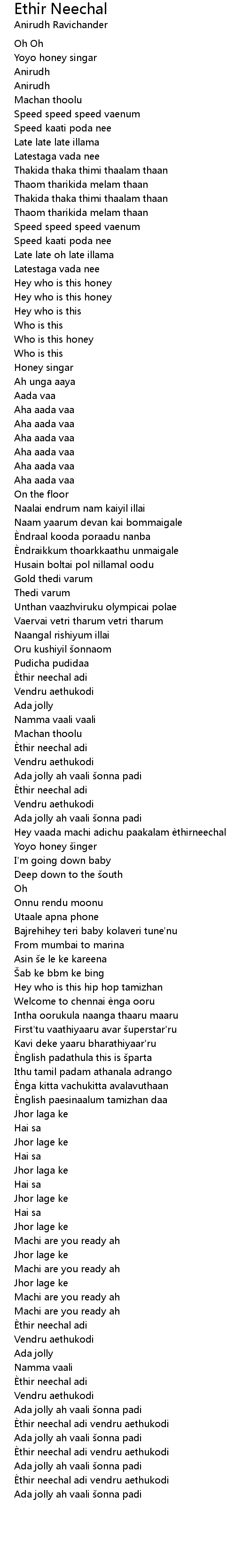 | [03:00.29] | Hey who is this hip hop tamizhan |