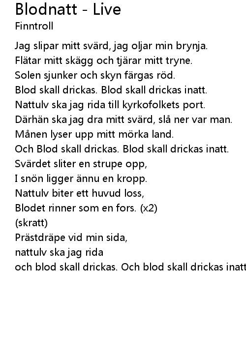 | och blod skall drickas. Och blod skall drickas inatt. |