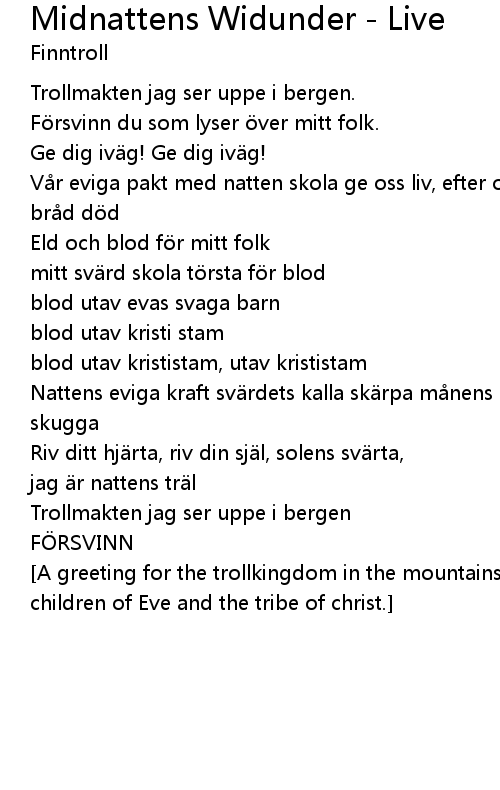 | Song | Midnattens Widunder - Live |