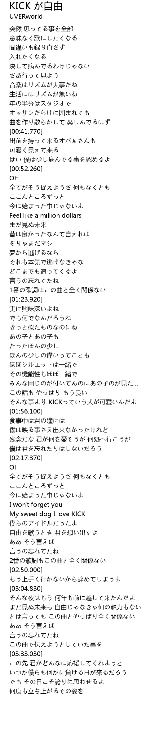 | [01:51.430] | そんな事より KICKっていう犬が可愛いんだよ |