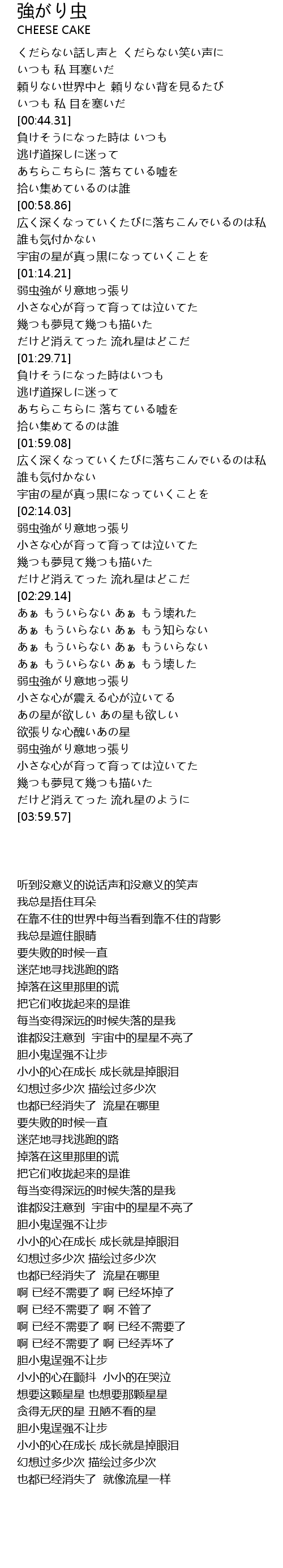 | [02:14.40] | 弱虫強がり意地っ張り |