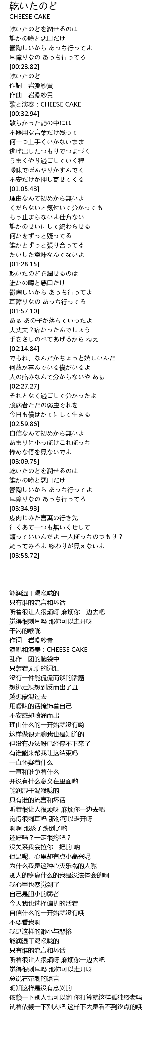 乾いたのど |