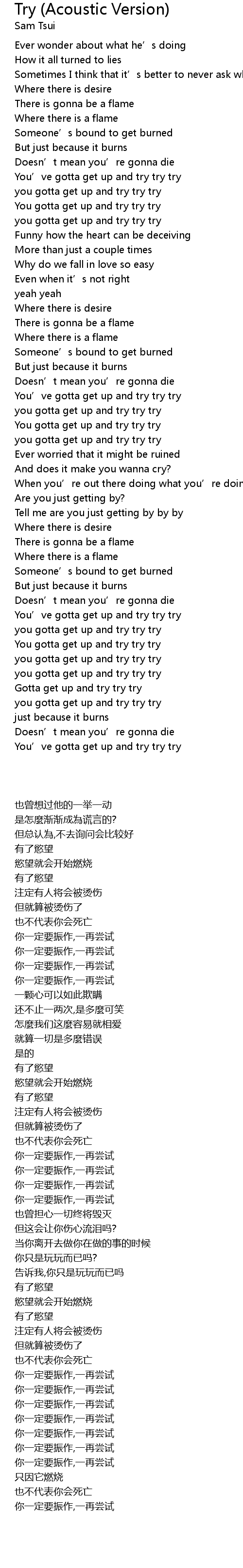 | [03:20.10] | You' ve gotta get up and try try try |