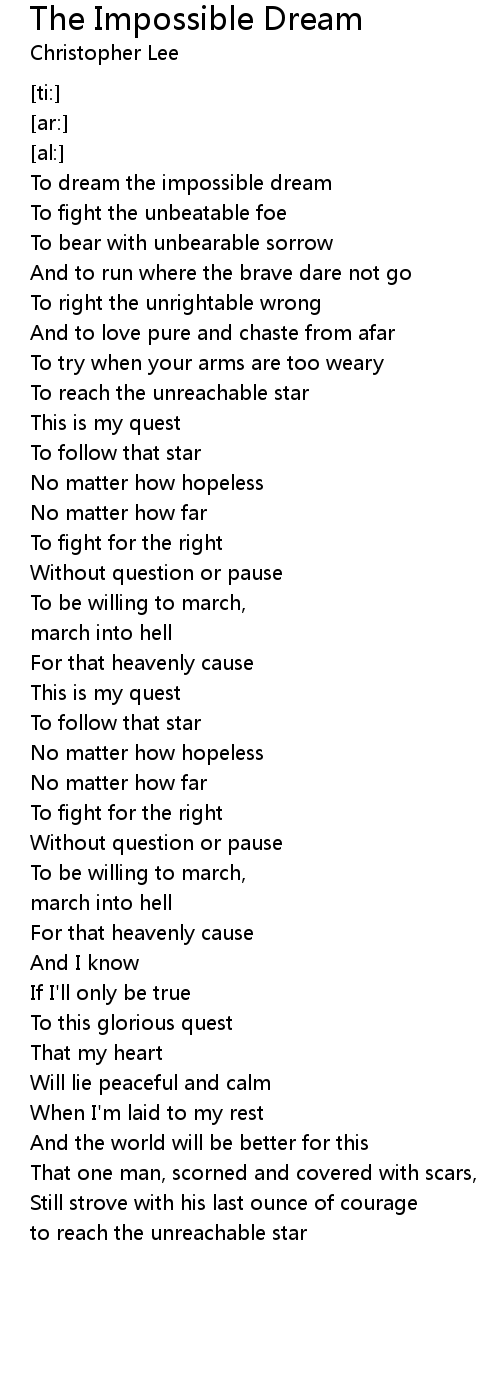 To dream the impossible dream |