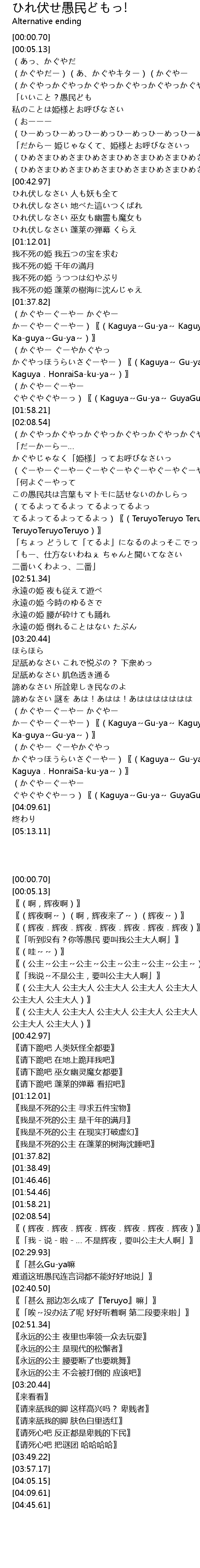 | [01:30.77] | 我不死の姫 蓬莱の樹海に沈んじゃえ |
