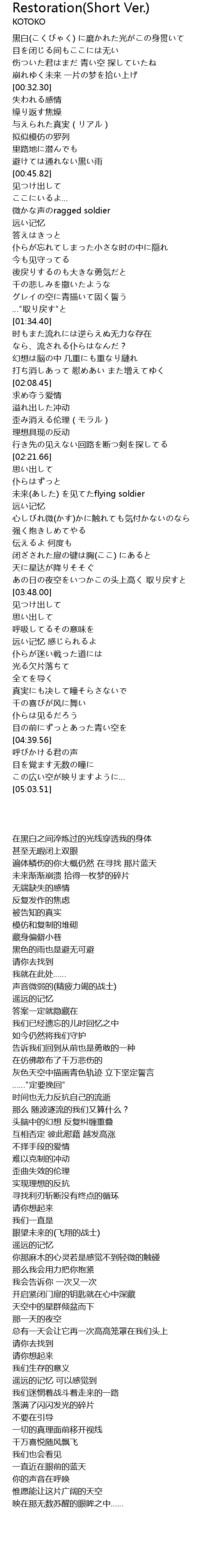| [02:25.75] | 未来(あした) を见てたflying soldier |