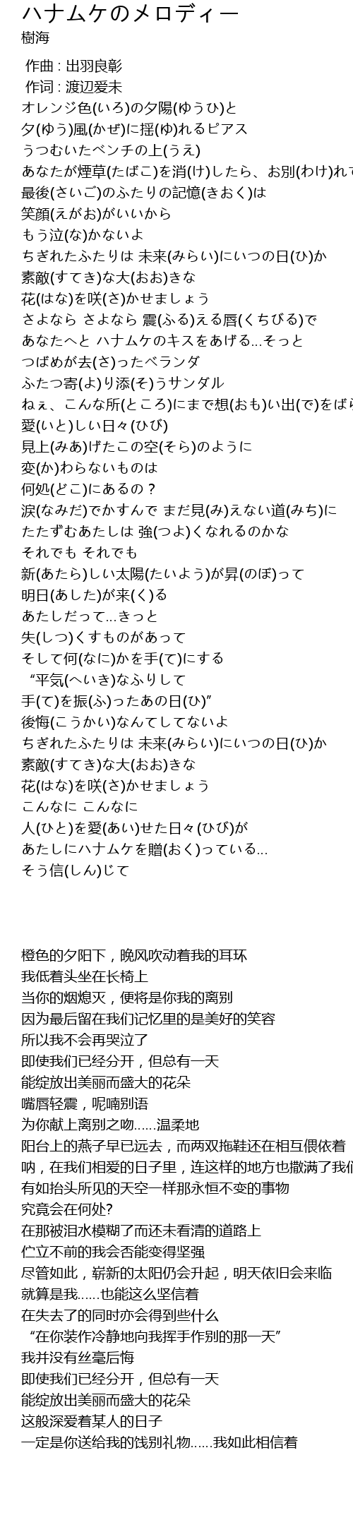 | [03:13.000] | “平気(へいき)なふりして 手(て)を振(ふ)ったあの日(ひ)” |