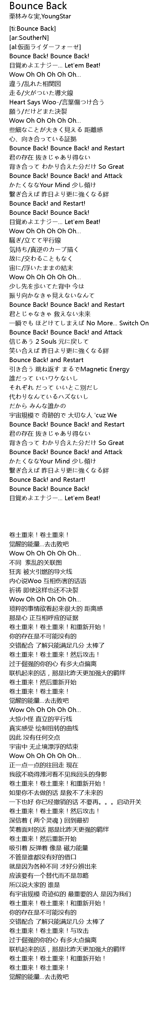 | [03:58.34] | Bounce Back! Bounce Back! |