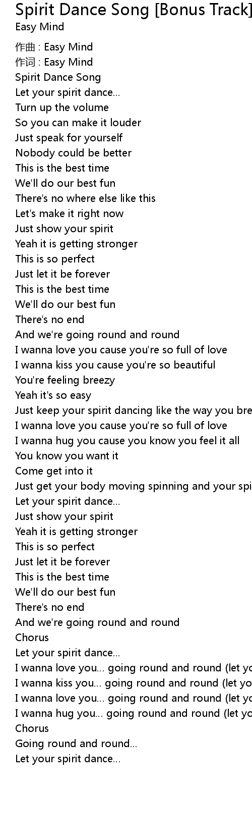 | I wanna hug you going round and round let your spirit dance | |