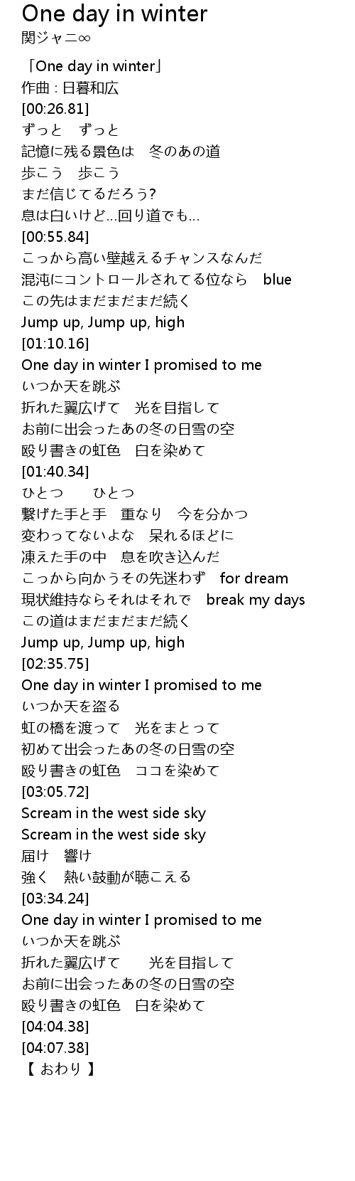 | [00:01.81] | 「One day in winter」 |