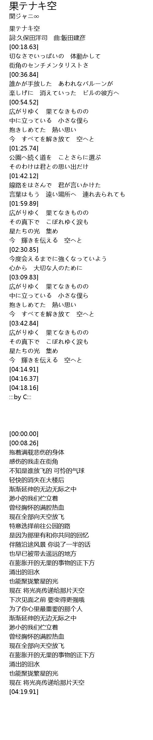 | [03:12.24] | 広がりゆく 果てなきものの |