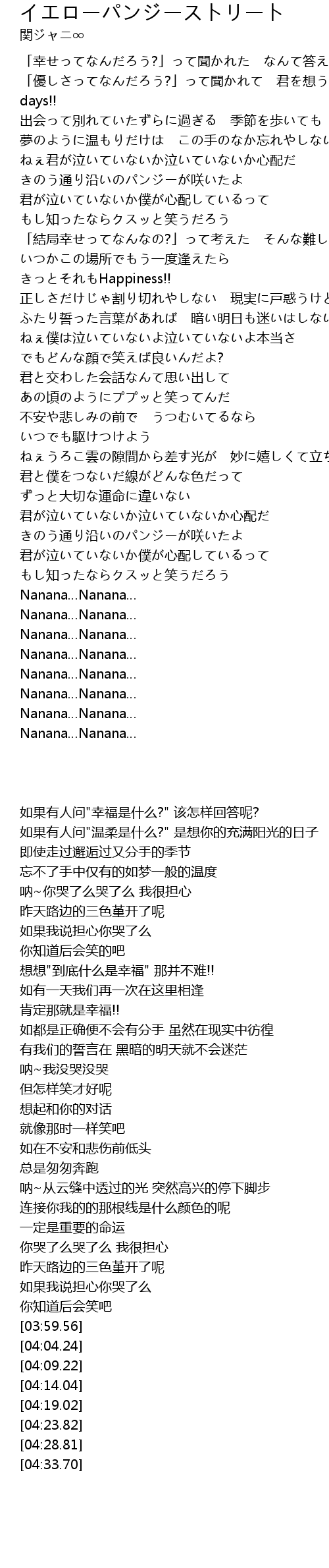 | [03:44.15] | きのう通り沿いのパンジーが咲いたよ |
