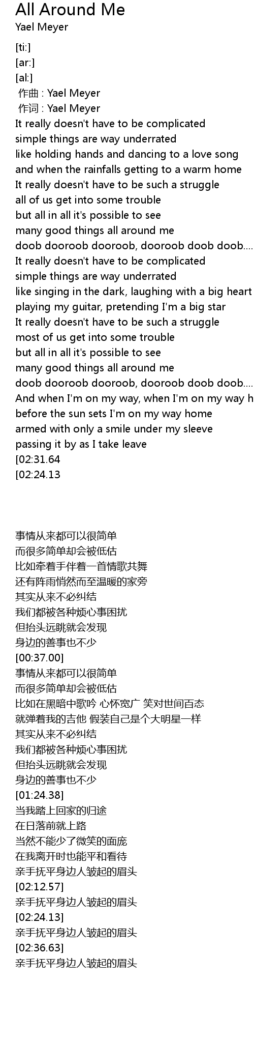 | [00:00.00] | zuò qǔ : Yael Meyer |