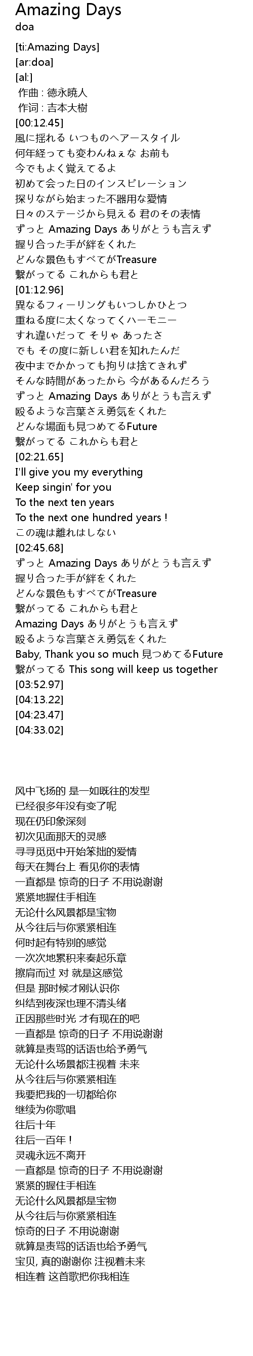 | [00:49.28] | Amazing Days yan |